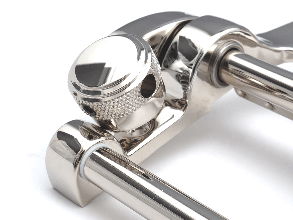 Das Nonplusultra in Sachen Funktionalität und Design - Das Duesenberg Radiator Tremola. Mit einem stärkeren Fokus auf detailverliebtes Design bietet Dir das Radiator Tremola die gewohnte Duesenberg Qualität und Raffinesse, wie auch unser Standard Diamond Deluxe Tremola. Der Tremolohebel ist frei um 360° drehbar, im Winkel justierbar und kann innerhalb von Sekunden demontiert werden, wenn Du ihn mal nicht brauchst. Die Saiten werden beim Wechsel einfach in den fest verschraubten Lochbalken unterhalb der Achse eingefädelt und völlig stressfrei zu den Mechaniken geführt. Kein Verrutschen, kein Festhalten nötig. (Ausführung für Rechtshänder-Gitarren)Die lange Version ist auf der Starplayer TV DLX, auf der Starplayer TV Streamline und auf der Fullerton Elite zu finden. Und auch Joe Walsh hat das Radiator Tremolo für sein persönliches Modell ausgewählt.Hinweis: Für die Installation empfehlen wir einen professionellen Gitarrenbauer zu Rate zu ziehen.Hinweis: Das Radiator Tremolo ist ohne Modifikationen am Korpus der Gitarre nicht mit dem Diamond Deluxe Tremola kompatibel.