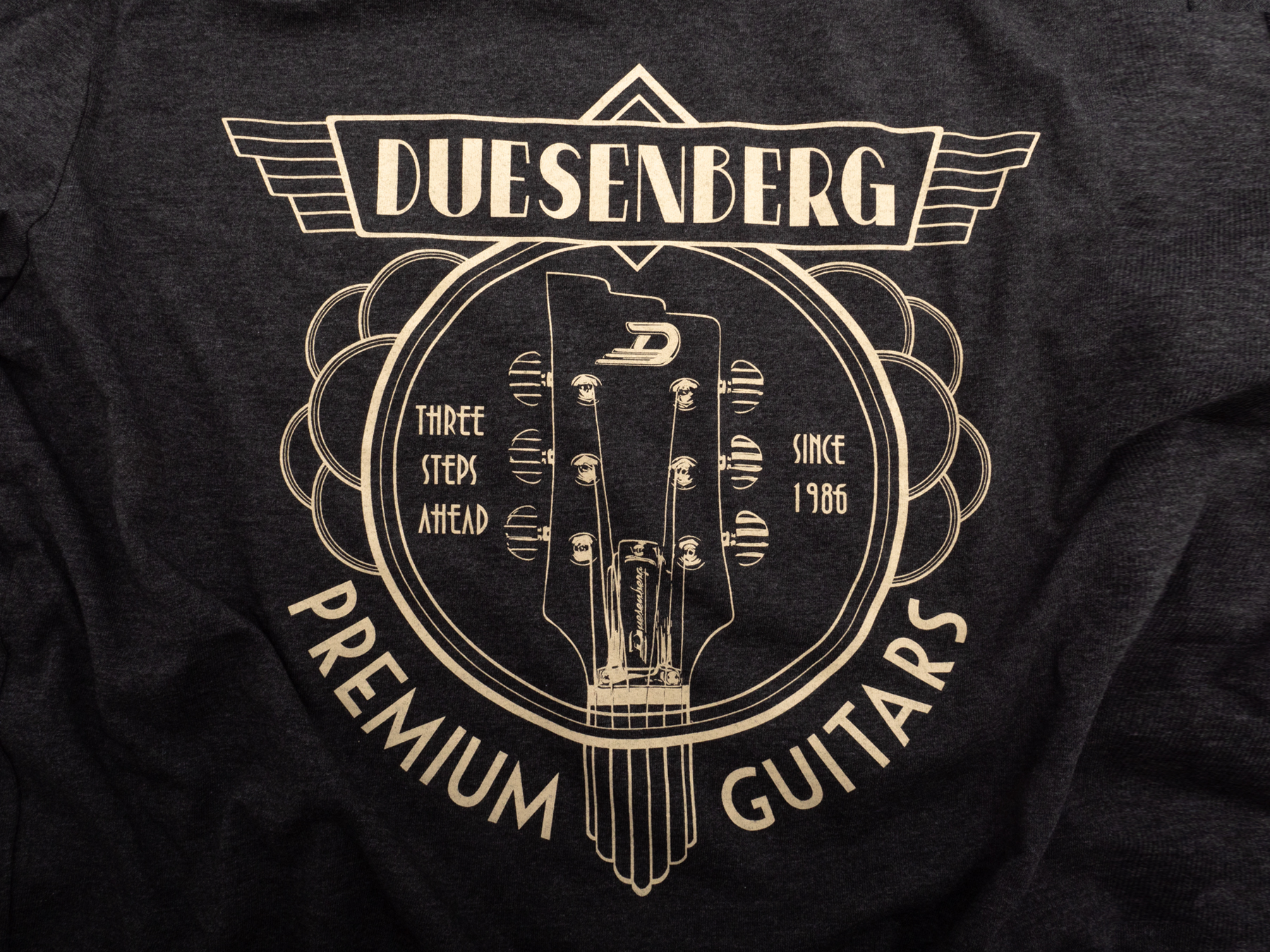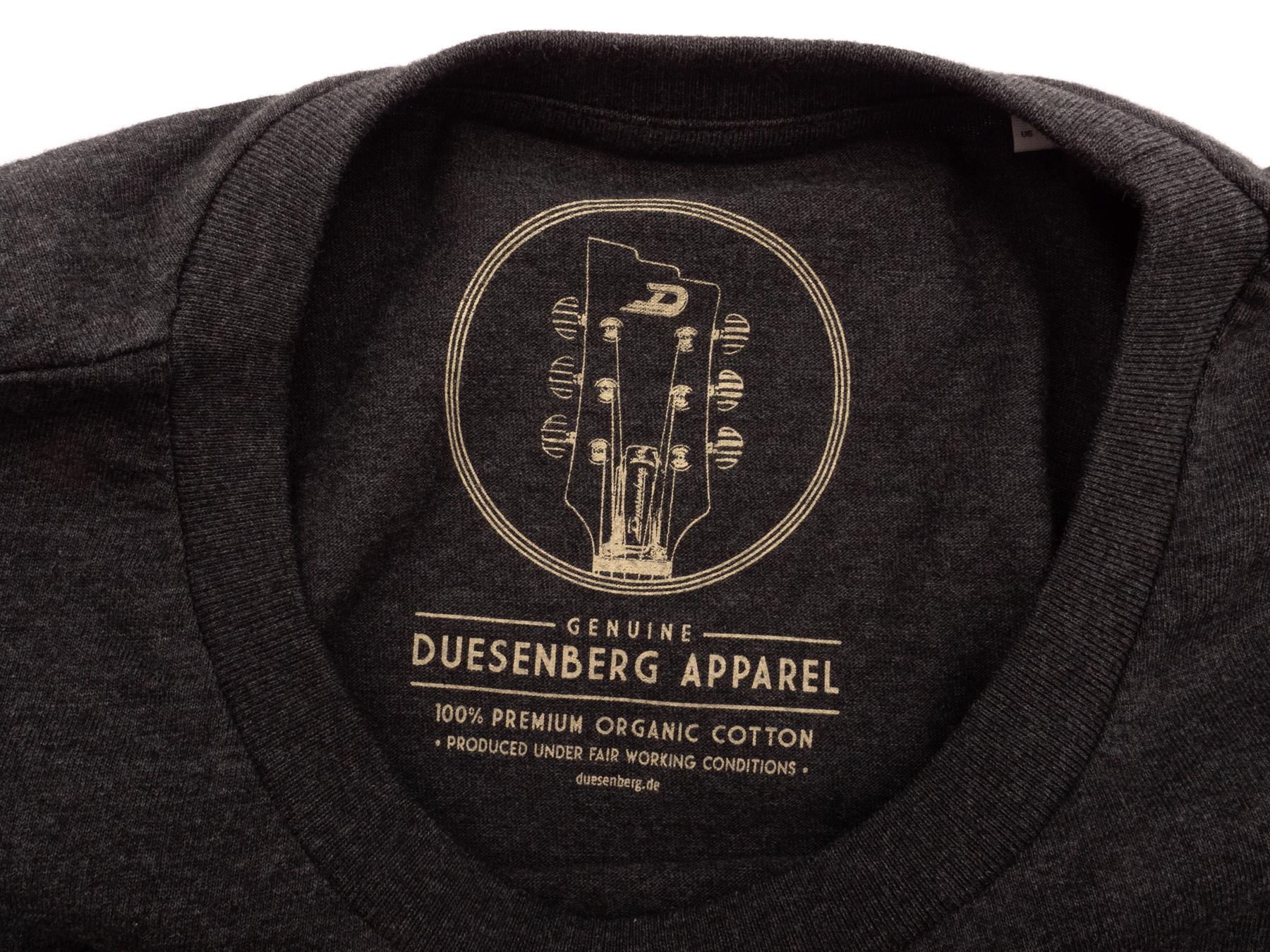 Die Shirts haben einen großen Print auf der Vorderseite, einen kleinen Nackenprint im Inneren und einen Logoprint auf der Rückseite. Und weil wir wollen, dass Du viele Jahre Spaß an Deinem Duesenberg T-Shirt hast, gibts für lange Farbtreue und optimalen Sitz natürlich auch bei Stoffen und Farben nur beste Qualität.