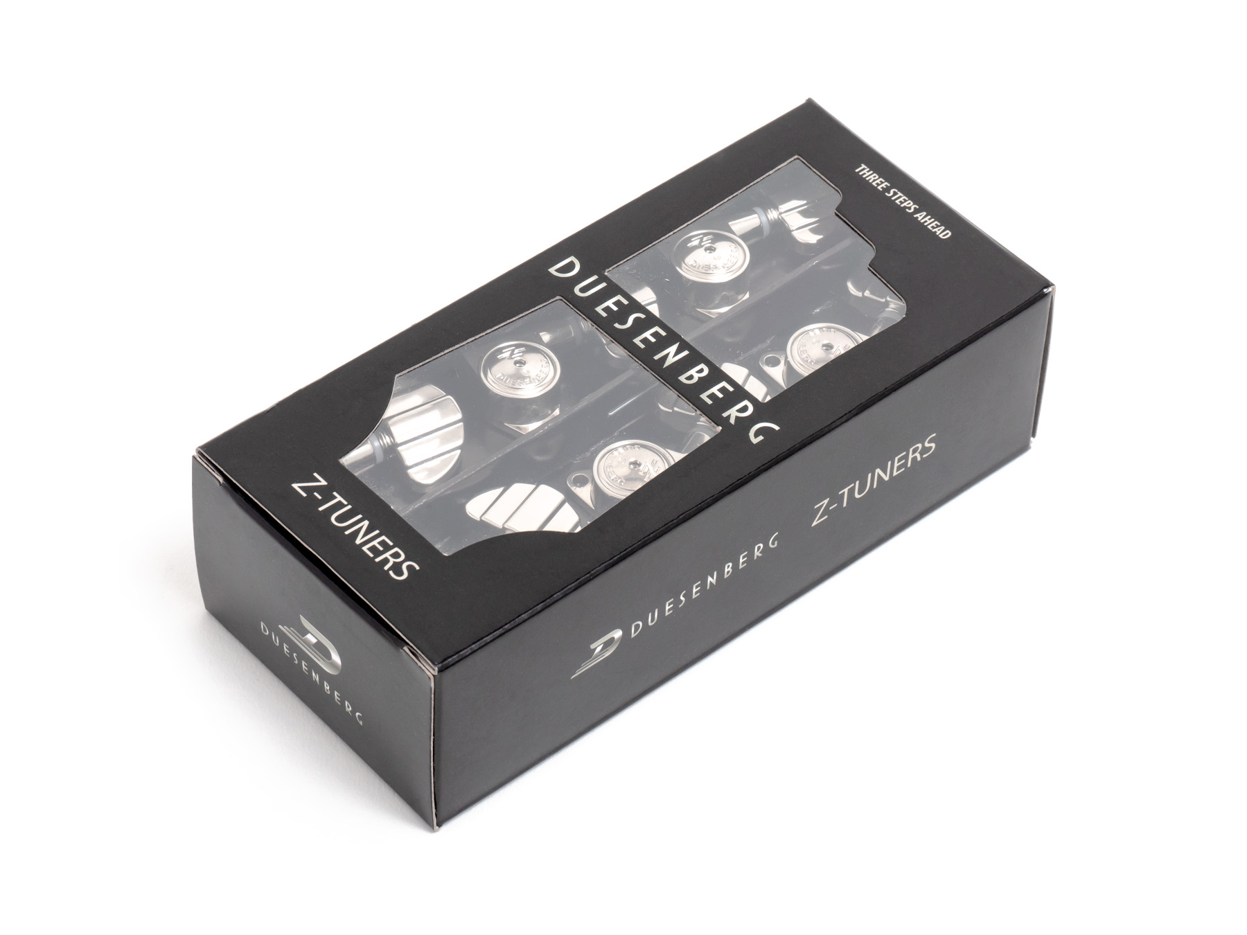 Lieferumfang: 6 x Duesenberg Z-Tuner (3+3), Schrauben, Unterlegscheiben, Befestigungshülsen